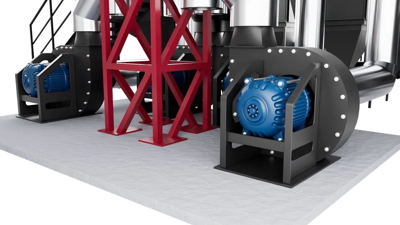 Узлы (тяго-дутьевые машины) принудительной откачки дымовых газов в дымовую трубу